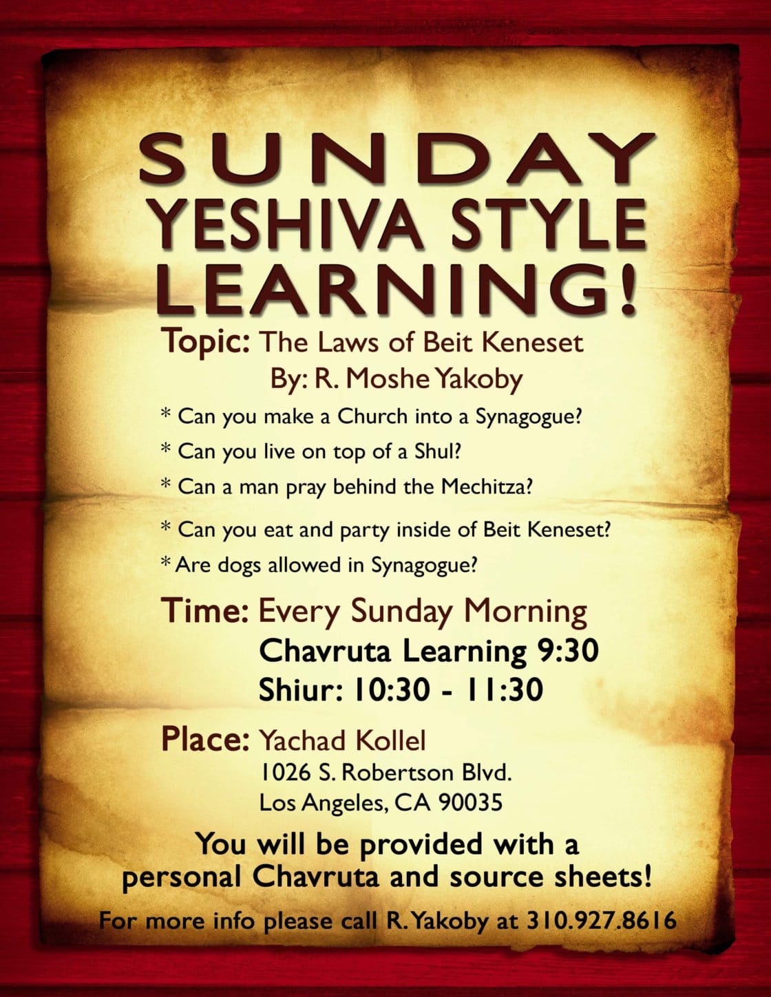 Events Kollel Classes Special Classes Sunday Yeshiva Style Learning! by admin|Published December 30, 2011