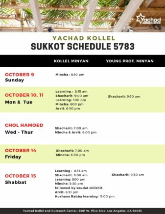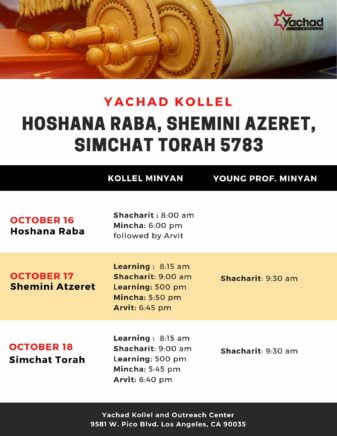 Sukkot, Shemini Atzeret / Simchat Torah Schedule